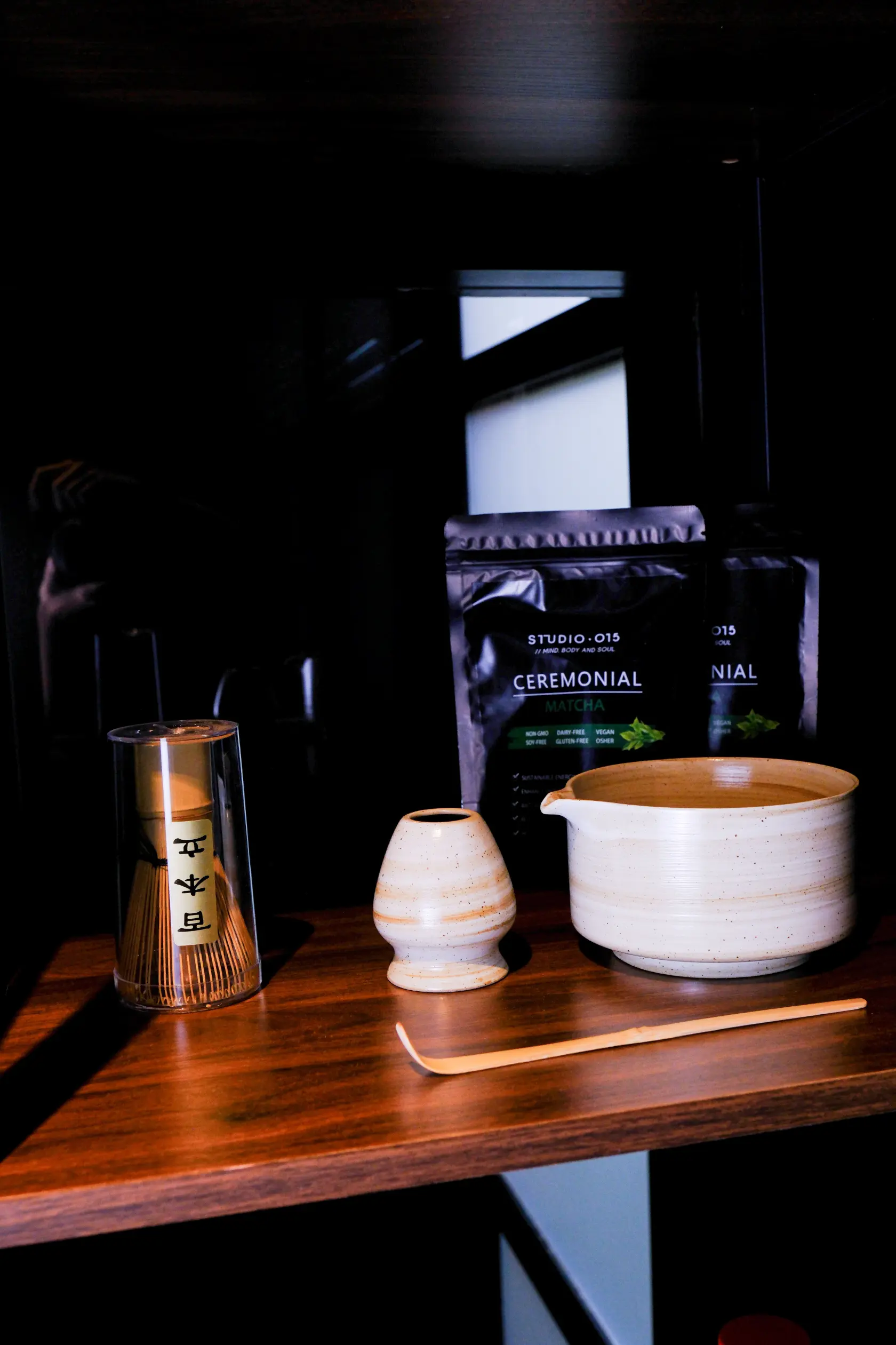 Includes: Matcha bowl, bamboo whisk, bamboo spoon